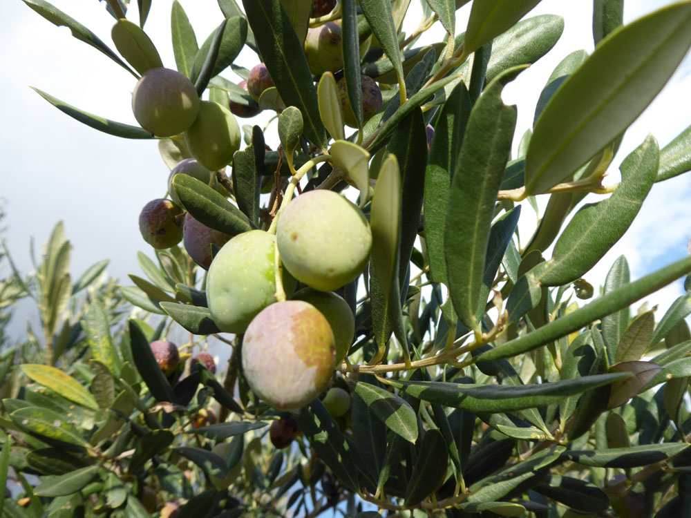 Olivenbaum (Ölbaum) Olea europaea Familie: Ölbaumgewächse / Olaceae Fundort: Kroatien - Maslinica, 07.10.2018 Ursprungsvorkommen: Mittelmeerraum, Naher Osten Öl- und Speisepflanze